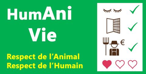 HumAni Vie is the European certification mark owned by the French animal welfare association: Canis Ethica. It aims: certifying livestock good cares while being bred, transported and slaughtered.